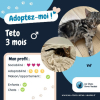 Teto est adoptable sous contrat associatif, et certificat d’engagement et de connaissance.