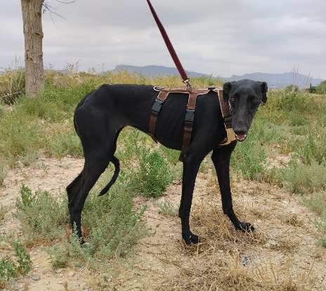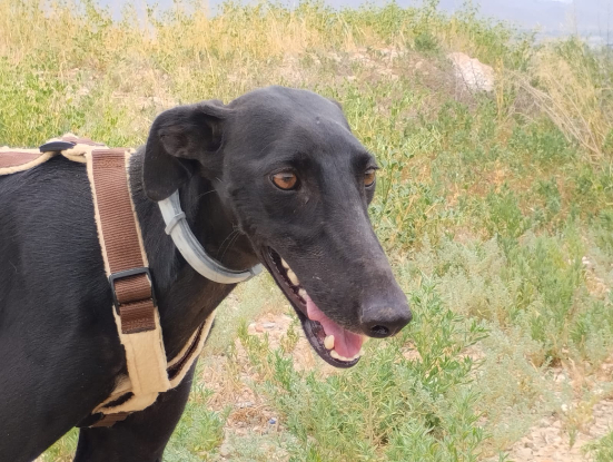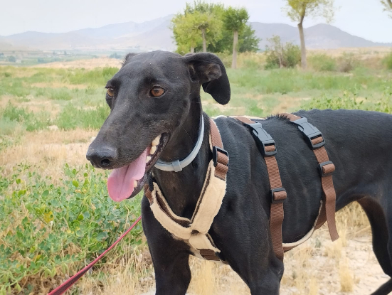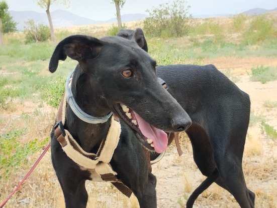 Découvrez MONTSE, une magnifique Galga à la robe noire ébène, née le 1er octobre 2024. Actuellement, elle mesure 63 cm et pèse 16 kg. Elle est entrée au refuge en juin 2025 et est en bonne santé.