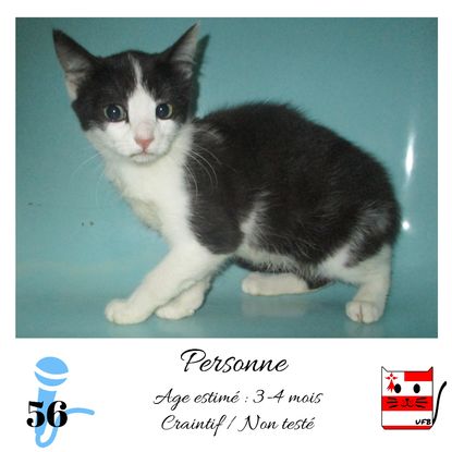 URGENCE EUTHANASIE ! Personne est un mâle de 3-4 mois craintif (un comportement normal en fourrière) qui vous attend dans une fourrière du 56. ATTENTION SORTIE AU PLUS TARD LE 25/09/2020 (avant euthanasie) ! Pour adopter, c'est facile : ➡️ On se rend sur la page facebook d'Urgence Fourrière de Bretagne (UFB) -> https://www.facebook.com/sosfourrieresbreizh/ ➡️ On vient en message privé sur la page UFB ➡️ On remplit le questionnaire ➡️ Si le questionnaire est validé, on se rend disponible pour la pré-visite ➡️ On se rend aussi disponible pour venir chercher le loulou en fourrière Les chats sortent de fourrière primo-vaccinés et identifiés. Restera à charge de l’adoptant le rappel de vaccin et la stérilisation qui est OBLIGATOIRE. Les femelles en fourrière ayant été trouvées dans la rue, il y a fort à parier que nombre d'entre elles en âge de l'être soient gestantes ... ---- A PROPOS D'URGENCE FOURRIERE DE BRETAGNE (UFB) Nous sommes un COLLECTIF d'ASSOCIATIONS DE PROTECTION ANIMALE (qui rassemble notamment Moustaches et Compagnie, Bêtes de Scène, les Pachas, Chats Libres de Berné, etc, etc....) Le BUT de ce collectif d'associations est donc de SORTIR ces animaux des fourrières surchargées en les faisant ADOPTER de manière LEGALE par des familles ou en leur trouvant des FAMILLES D'ACCUEIL lorsque des places en association se libèrent.