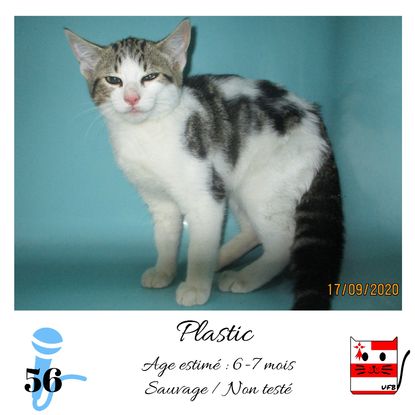 URGENCE EUTHANASIE ! Plastic est un mâle de 6-7 mois sauvageon (un comportement normal en fourrière) qui vous attend dans une fourrière du 56. ATTENTION SORTIE AU PLUS TARD LE 25/09/2020 (avant euthanasie) ! Pour adopter, c'est facile : ➡️ On se rend sur la page facebook d'Urgence Fourrière de Bretagne (UFB) -> https://www.facebook.com/sosfourrieresbreizh/ ➡️ On vient en message privé sur la page UFB ➡️ On remplit le questionnaire ➡️ Si le questionnaire est validé, on se rend disponible pour la pré-visite ➡️ On se rend aussi disponible pour venir chercher le loulou en fourrière Les chats sortent de fourrière primo-vaccinés et identifiés. Restera à charge de l’adoptant le rappel de vaccin et la stérilisation qui est OBLIGATOIRE. Les femelles en fourrière ayant été trouvées dans la rue, il y a fort à parier que nombre d'entre elles en âge de l'être soient gestantes ... ---- A PROPOS D'URGENCE FOURRIERE DE BRETAGNE (UFB) Nous sommes un COLLECTIF d'ASSOCIATIONS DE PROTECTION ANIMALE (qui rassemble notamment Moustaches et Compagnie, Bêtes de Scène, les Pachas, Chats Libres de Berné, etc, etc....) Le BUT de ce collectif d'associations est donc de SORTIR ces animaux des fourrières surchargées en les faisant ADOPTER de manière LEGALE par des familles ou en leur trouvant des FAMILLES D'ACCUEIL lorsque des places en association se libèrent.