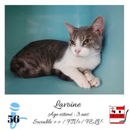 URGENCE EUTHANASIE ! Lavoine est un mâle de 3 ans FIV+ sociable qui vous attend dans une fourrière du 56. ATTENTION SORTIE AU PLUS TARD LE 25/09/2020 (avant euthanasie) ! Pour adopter, c'est facile : ➡️ On se rend sur la page facebook d'Urgence Fourrière de Bretagne (UFB) -> https://www.facebook.com/sosfourrieresbreizh/ ➡️ On vient en message privé sur la page UFB ➡️ On remplit le questionnaire ➡️ Si le questionnaire est validé, on se rend disponible pour la pré-visite ➡️ On se rend aussi disponible pour venir chercher le loulou en fourrière Les chats sortent de fourrière primo-vaccinés et identifiés. Restera à charge de l’adoptant le rappel de vaccin et la stérilisation qui est OBLIGATOIRE. Les femelles en fourrière ayant été trouvées dans la rue, il y a fort à parier que nombre d'entre elles en âge de l'être soient gestantes ... ---- A PROPOS D'URGENCE FOURRIERE DE BRETAGNE (UFB) Nous sommes un COLLECTIF d'ASSOCIATIONS DE PROTECTION ANIMALE (qui rassemble notamment Moustaches et Compagnie, Bêtes de Scène, les Pachas, Chats Libres de Berné, etc, etc....) Le BUT de ce collectif d'associations est donc de SORTIR ces animaux des fourrières surchargées en les faisant ADOPTER de manière LEGALE par des familles ou en leur trouvant des FAMILLES D'ACCUEIL lorsque des places en association se libèrent.