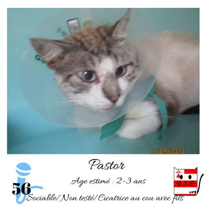 URGENCE EUTHANASIE ! Pastor est un mâle de 2-3 ans sociable qui vous attend dans une fourrière du 56. ATTENTION SORTIE AU PLUS TARD LE 25/09/2020 (avant euthanasie) ! Pour adopter, c'est facile : ➡️ On se rend sur la page facebook d'Urgence Fourrière de Bretagne (UFB) -> https://www.facebook.com/sosfourrieresbreizh/ ➡️ On vient en message privé sur la page UFB ➡️ On remplit le questionnaire ➡️ Si le questionnaire est validé, on se rend disponible pour la pré-visite ➡️ On se rend aussi disponible pour venir chercher le loulou en fourrière Les chats sortent de fourrière primo-vaccinés et identifiés. Restera à charge de l’adoptant le rappel de vaccin et la stérilisation qui est OBLIGATOIRE. Les femelles en fourrière ayant été trouvées dans la rue, il y a fort à parier que nombre d'entre elles en âge de l'être soient gestantes ... ---- A PROPOS D'URGENCE FOURRIERE DE BRETAGNE (UFB) Nous sommes un COLLECTIF d'ASSOCIATIONS DE PROTECTION ANIMALE (qui rassemble notamment Moustaches et Compagnie, Bêtes de Scène, les Pachas, Chats Libres de Berné, etc, etc....) Le BUT de ce collectif d'associations est donc de SORTIR ces animaux des fourrières surchargées en les faisant ADOPTER de manière LEGALE par des familles ou en leur trouvant des FAMILLES D'ACCUEIL lorsque des places en association se libèrent.
