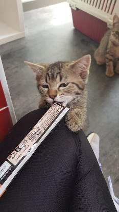 Anouk 3 mois est une petite chérie à la fois calme et joueuse. Elle apprécie les caresses et ronronnent copieusement. Elle reste néanmoins timide et peut avoir besoin d'un temps d'adaptation. La présence d'un autre félin sera un +. (elle peut être adoptée avec un autre loulou de l'association). Identifiée, vaccinée, stérilisée. Sa maman est négative fiv / felv. Frais d'adoption: 170€. En accueil à Bonneuil Matours, 86, adoptable hors département.