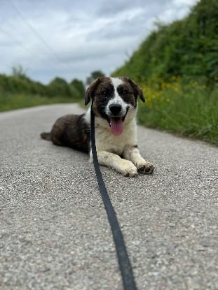 Bonjour à tous, je m'appelle Aro, je suis un petit chien croisé berger / basset et j'arrive de Roumanie avec mes copains et mon frère Filou ❤