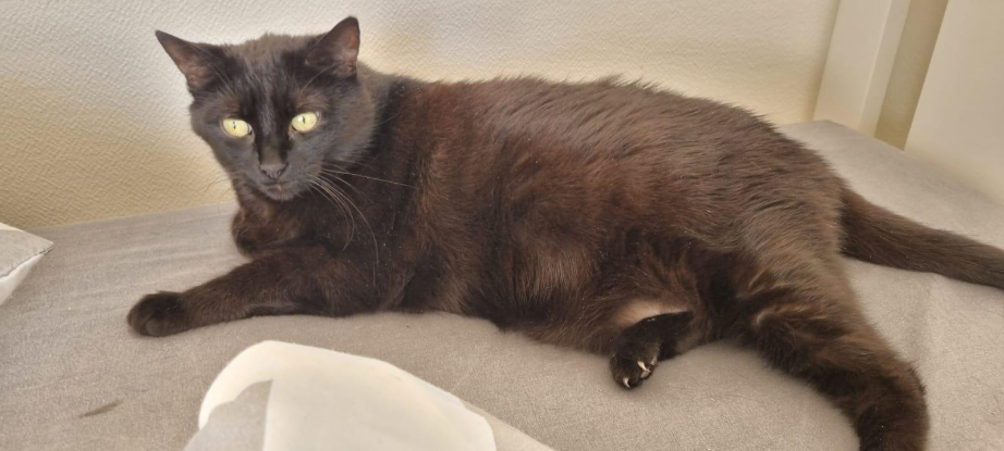 Sa dernière famille, à Thiais, l’a recueillie un peu par le hasard de la vie, avant que de nouvelles circonstances la dépassant ne les empêchent de la garder. Ils ont contacté l’association, nous décrivant une minette complètement terrorisée, recroquevillée sous un canapé, déboussolée par ces abandons successifs qu’elle ne comprenait pas.