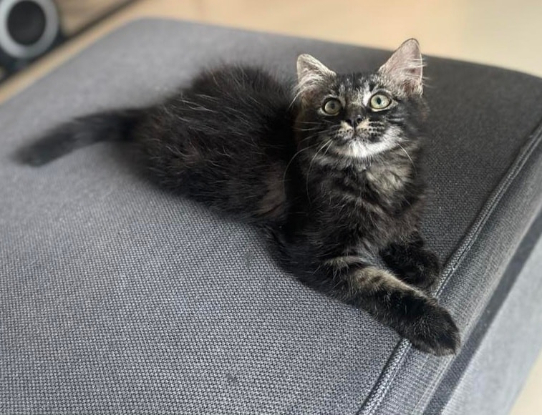 Sultan est un jeune mâle( sexe à confirmer par le vétérinaire) un peu plus grand que ses compagnons de jeu. Il se montre encore très timide et ne se laisse pas encore toucher, mais sa famille d’accueil y travaille avec beaucoup de patience, et il fait des progrès réguliers. C’est un chaton qui a simplement besoin d’un peu plus de temps et de douceur pour s’épanouir pleinement. Son pelage noir parsemé de touches beiges et ses magnifiques yeux verts font déjà craquer tout le monde, même à distance. Avec un environnement rassurant, il pourra peu à peu prendre confiance.