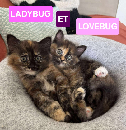 Ladybug est pour l’instant un peu plus joueuse, tandis que Lovebug se montre un peu plus câline, mais leurs caractères sont très proches : douces, sociables et faciles à vivre.