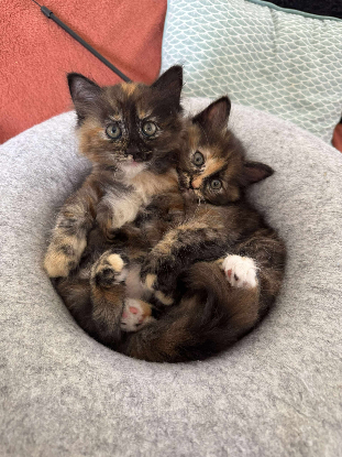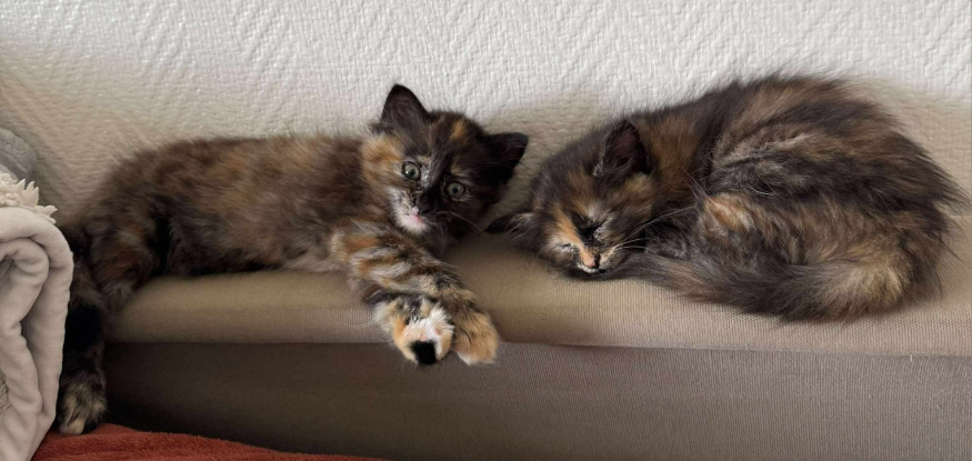 Ces deux adorables sœurs aux poils mi-longs et à la magnifique robe écaille de tortue sont tout simplement inséparables !
