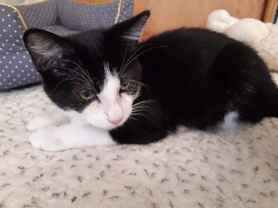 Lucien, est un chaton de 3 mois 1/2, dynamique, joueur, un peu aventurier et casse-cou, curieux, coquin, une petite tornade en quelque sorte. Mais Lucien est aussi un amour de chat câlin, et une boite à ronrons dès qu'on le caresse. Il n'est pas pot de colle mais aime à l'occasion se glisser sur vous genoux ou à côté de vous pour un petit moment de complicité. Si une adoption séparée est envisageable, une adoption en duo avec son frère Bambou serait un plus, tant Lucien et Bambou sont complices, Lucien rassurant un peu Bambou.  Bambou et Lucien sont OK chats et OK chiens si ceux-ci sont "sociables". Enfants pas testés.