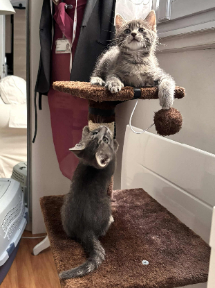 Un peu timides au départ, ces deux chatons prennent le temps d’explorer leur environnement, de découvrir chaque recoin et de trouver des endroits tranquilles pour s’y reposer.