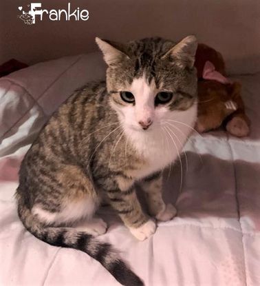 FRANKIE, né le 21/05/2018 Couleur : tigré et blanc FRANKIE avait été trouvé errant l'an dernier près du KFC de Cormeilles en Parisis Il avait été pris en charge par l'association puis relâché dans le jardin d'une bénévole qui devait en prendre soin. Il a été retrouvé errant à plusieurs dizaines de kms de cette personne qui ne nous donne plus de nouvelles depuis plusieurs mois. Il était maigre et pas en super forme. Nous l'avons soigné et il est adorable avec la famille d'accueil, il réclame des câlins en permanence. Ok avec les chats. FRANKIE est vraiment un chat super gentil et très câlin. Il est vermifugé et déparasité . Il est testé FIV positif et FELV négatif, identifié, castré et primo vacciné (typhus, coryza et leucose) Frais adoption DON LIBRE mini 50 € En accueil à Eaubonne (95) Si vous souhaitez l'adopter, contactez-nous au 06 17 40 10 22 de 9h à 20h, n'hésitez pas à laisser un message sur le répondeur (surtout PAS DE SMS, merci)