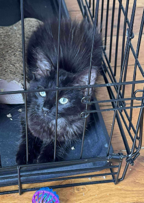 Petite chatonne noire aux poils mi-longs et soyeux, LEKKER est la plus joueuse de sa fratrie. Si elle peut encore se montrer un peu craintive face à l’humain, il suffit de dégainer une canne à pêche pour la voir se transformer en véritable petite panthère ! Dès qu’un jouet bouge, elle bondit avec agilité et détermination, fière de montrer ses talents de chasseuse. Le jeu est pour elle un merveilleux vecteur de confiance, et elle fera de beaux progrès auprès d’une personne patiente et présente.