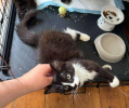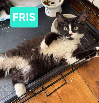 Seul petit mâle de la fratrie, FRIS est aussi le plus sociable du trio. Ce joli chaton noir et blanc aux poils mi-longs est naturellement curieux et câlin. Il viendra se frotter à vous avec douceur, surtout si vous avez une petite friandise sous la main ! Déjà à l’aise en dehors de la cage de sociabilisation, il s’est montré très curieux envers les autres chats et aime explorer les environs. Avec son tempérament équilibré et affectueux, FRIS promet de devenir un parfait petit compagnon de canapé, prêt à partager de jolis moments de tendresse.