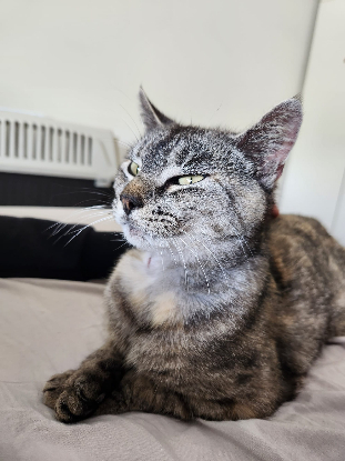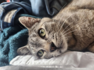 J’adore qu’on me caresse le menton surtout en me prélassant sur un plaid tout doux. Mon pelage, à première vue gris, est riche de différentes teintes qui émerveilleront vos yeux.![]()