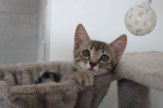 Artémis est la plus calme de la fratrie : une petite minette câline qui adore les caresses et les moments tendres.