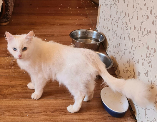 Son pelage a souffert par manque de soins, il s'étoffera maintenant qu'elle est soignée correctement.