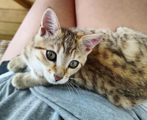 Plus timide et plus facilement effrayée par les bruits ou les nouvelles personnes que son frère, Ankara n’en est pas moins câline : dès le lendemain de son arrivée, elle s’installait déjà sur les genoux de sa famille d’accueil pour réclamer des caresses.