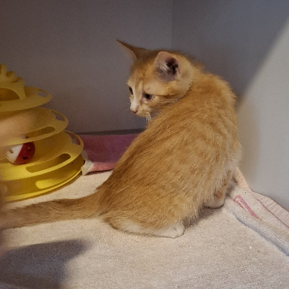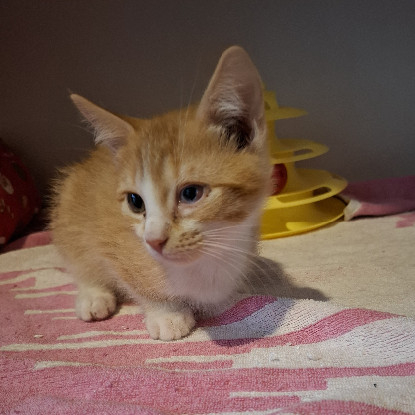 Bonjour ! Je m'appelle Aka, et je suis un adorable petit chaton né à l'association, choyé en attendant de trouver ma famille pour la vie. Ma particularité ? Un petit œil de pirate, souvenir d'une bataille que j'ai menée et gagnée contre une vilaine infection quand j'étais tout petit.