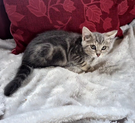 Célestin a ainsi pu poursuivre sa petite vie de chaton en toute sécurité. Il est encore un peu timide mais il apprend à faire confiance. Il ronronne quand on le prend sur les genoux.