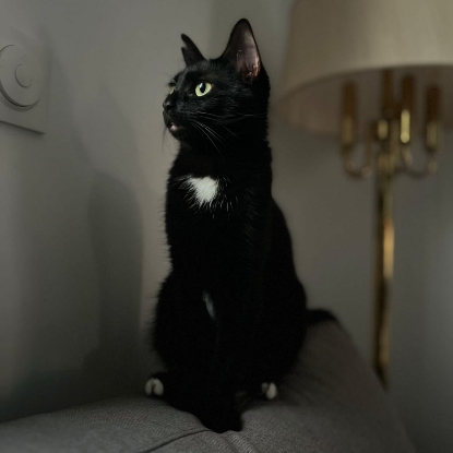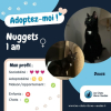 Nuggets est une très belle minette noire, avec une pointe de blanc au bout des pattes et sur le torse. Nuggets c’est un petit format de chat, aussi joli qu’attachante. Très curieuse, elle est toujours fourrée proche de ses humains, pour les observer. Nuggets est aussi joueuse, gourmande et pot de colle. C’est une minette un peu timide avec les étrangers, elle n’a d’yeux que pour ses humains adorés. Elle mérite une belle famille !