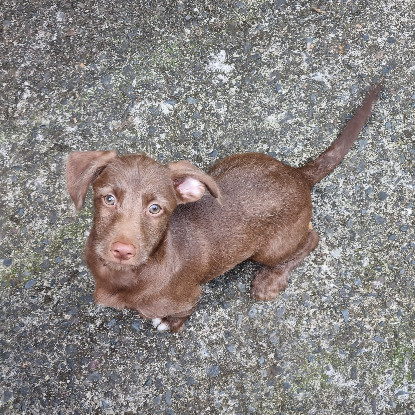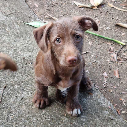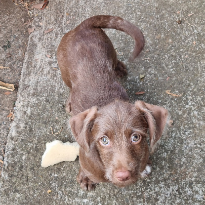 Petit chiot tendre et expressif, il adore les humains mais sait aussi affirmer sa personnalité, surtout face aux autres chiens.