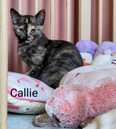 La magnifique et douce Callie, née fin avril 2025, est à l'adoption. Curieuse et joueuse, toujours un peu timide, elle cherche la famille patiente et attentionnée qui saura l'aider à devenir une belle chatte, confiante et câline.