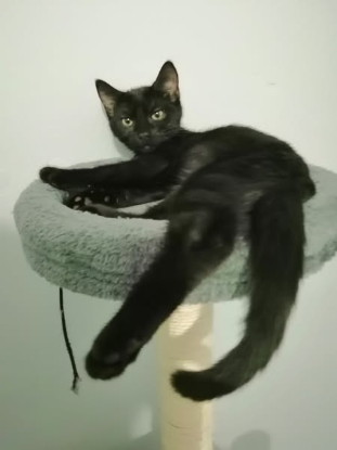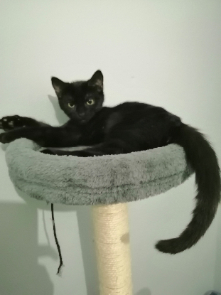 C'est une petite minette très joueuse qui aime grimper partout, les jouets sont souvent des proies pour elle.