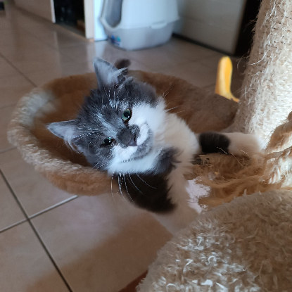Je me présente : Sonic, un beau gosse gris et blanc né le 14 mai 2025.
