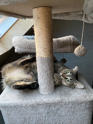 Je m’appelle Ada, et si je pouvais parler, j’aurais bien des choses à raconter. J’errais seule, probablement abandonnée, mais je n’ai jamais perdu ma douceur envers les humains. Un jour, alors que j’étais gestante, j’ai trouvé refuge dans le jardin d’un particulier bienveillant. C’est là que j’ai mis au monde mes petits, le 20 mai. Heureusement, on m’a mise à l’abri et j’ai pu prendre soin de mes bébés en sécurité, grâce à l’aide d’une association. Maintenant que mes chatons grandissent, c’est à moi de trouver une famille pour la vie.