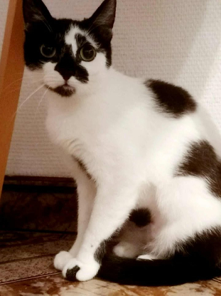 ALINE chatte noire et blanche 1 an identifiée par tatouage 308LOP de type européenne non lof.