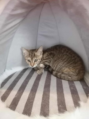 Azia est une adorable chatonne tigrée de 2 mois 1/2 de type européenne non LOF identifiée 308MPL, un brin réservée au début puis sociable, très câline et d’une douceur incroyable. Trouvée errante avec sa maman et ses frères et sœurs sur aire d'autoroute, elle a connu un début de vie difficile… Abandon ? Nous ne le saurons jamais. Mais aujourd’hui, elle est prête à trouver sa famille pour la vie ❤️.