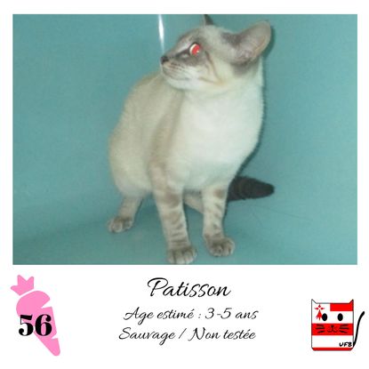 URGENCE EUTHANASIE ! Patisson est une femelle de 3-5 ans sauvageonne (un comportement normal en fourrière) qui vous attend dans une fourrière du 56. ATTENTION SORTIE AU PLUS TARD LE 2/10/2020 (avant euthanasie) ! Pour adopter, c'est facile : ➡️ On se rend sur la page facebook d'Urgence Fourrière de Bretagne (UFB) -> https://www.facebook.com/sosfourrieresbreizh/ ➡️ On vient en message privé sur la page UFB ➡️ On remplit le questionnaire ➡️ Si le questionnaire est validé, on se rend disponible pour la pré-visite ➡️ On se rend aussi disponible pour venir chercher le loulou en fourrière Les chats sortent de fourrière primo-vaccinés et identifiés. Restera à charge de l’adoptant le rappel de vaccin et la stérilisation qui est OBLIGATOIRE. Les femelles en fourrière ayant été trouvées dans la rue, il y a fort à parier que nombre d'entre elles en âge de l'être soient gestantes ... ---- A PROPOS D'URGENCE FOURRIERE DE BRETAGNE (UFB) Nous sommes un COLLECTIF d'ASSOCIATIONS DE PROTECTION ANIMALE (qui rassemble notamment Moustaches et Compagnie, Bêtes de Scène, les Pachas, Chats Libres de Berné, etc, etc....) Le BUT de ce collectif d'associations est donc de SORTIR ces animaux des fourrières surchargées en les faisant ADOPTER de manière LEGALE par des familles ou en leur trouvant des FAMILLES D'ACCUEIL lorsque des places en association se libèrent.