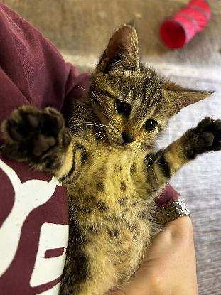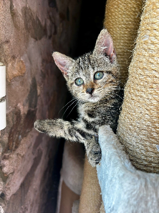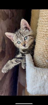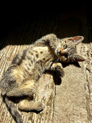 Je suis une chatte très curieuse et joueuse, j’adore jouer avec mes sœurs je suis très taquine. mais aussi passer des moments câlins sur les genoux des humains.