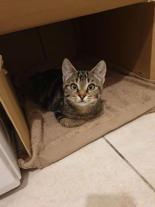 Xala est un mâle tabby d'environ 3 mois. Xala est un petit mâle assez discret avec un léger strabisme adorable qui aura besoin d'un environnement calme. Une fois rassuré, c'est un chaton câlin qui apprecie venir chercher les caresses. Il a reçu plusieurs soins vétérinaires : → identification par une puce électronique → vaccination contre le typhus et le coryza (primo-vaccination) Sa stérilisation est obligatoire à 6 mois. Il est adoptable contre une participation aux frais vétérinaires (85 euros).