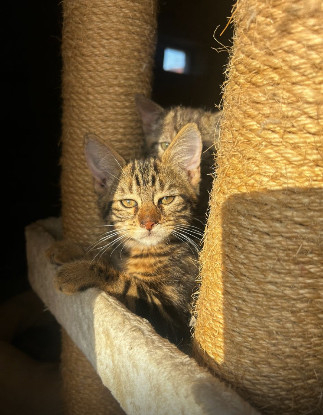 J’ai besoin d’une famille qui apprécie mon côté joueur, une double adoption pourrait me convenir car j’adore jouer avec les autres chats. Mes ententes chiens n’ont pas été testées mais je suis curieuse de les voir à la fenêtre.