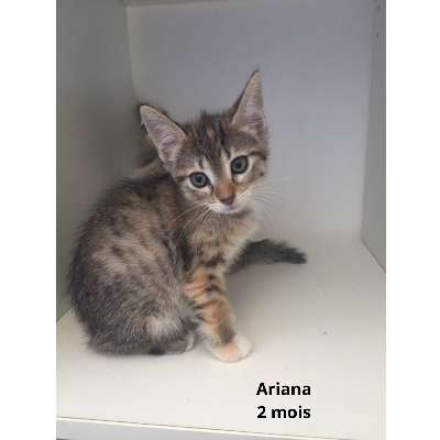 Ariana est une mignonne petite chatonne de 2 mois. Elle a été sevrée par sa maman. Elle est très joueuse, coquine. Un peu réservée au départ, il lui faudra un temps d'adaptation avec des inconnus, elle se montre alors très proche de l'humain.