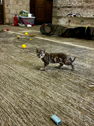 Je suis une chatte timide je ne viens pas encore vers les humains, j’adore jouer avec mes sœurs.