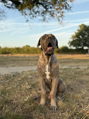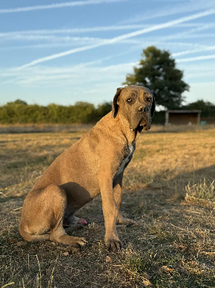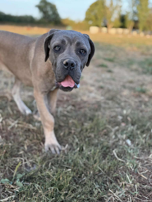 Coucou, je m'appelle Voltaire et je suis un magnifique cane corso d'à peine plus d'un an ❤