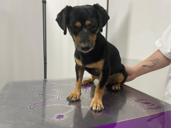 GAEL est un petit chien qui a été attaqué par un autre chien et qui a perdu son œil.