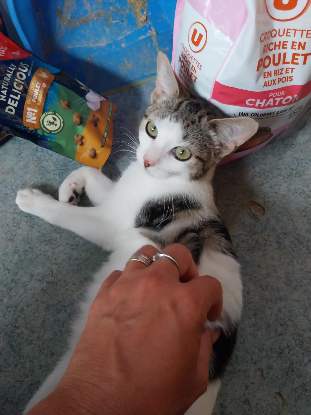 Une boule d'amour de 4/5 mois qui attente sa famille poir la vie, une famille fan de câlins et ronrons en continue
