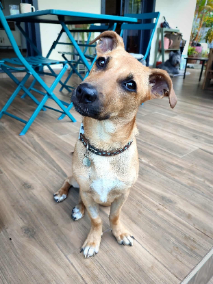C'est un chien dynamique et sociable avec ses congénères, il est très joueur, il est habitué à la présence des chats même s'il a encore tendance à les courser mais ne leur fait aucun mal. Il est adorable, charmeur et fait l'unanimité auprès de toutes les personnes qui croisent sa route.