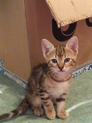 NUTELLA fait parti d'un groupe de chats et chatons récupérés sur un site de nourrissage.