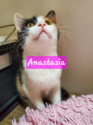 Anastasia, femelle de 3 mois, qui a été trouvée avec son frère et ses soeurs. Elle est adorable, extrêmement câline, une vraie pot de colle et très joueuse.