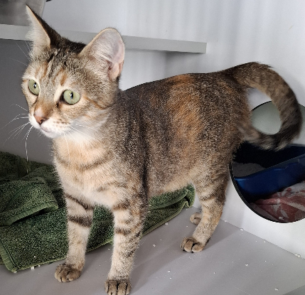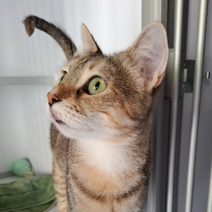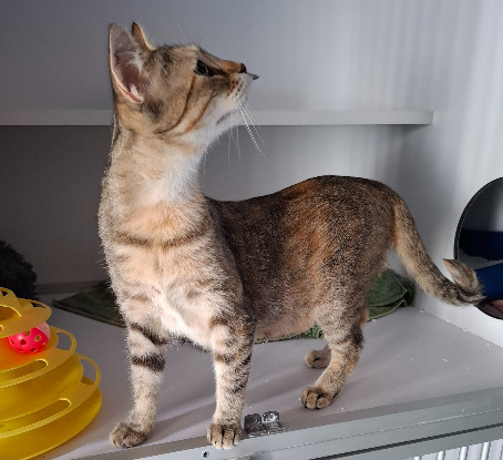 Sœur de notre Allumette, America a vu partir ses cinq bébés. Elle se retrouve maintenant seule et attend à son tour la famille qui posera son regard sur elle. Bien qu'elle ne soit plus un chaton, elle en a gardé le caractère : elle adore jouer et recevoir des caresses. Si vous lui ouvrez votre cœur, elle saura vous aimer en retour.
