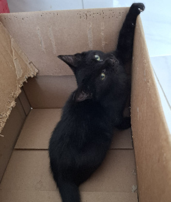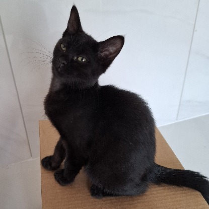 Voici Alma, une petite boule d'énergie et de tendresse de 3 mois. Avec son pelage noir soyeux et son regard malicieux, elle ne passe pas inaperçue ! Très joueuse, curieuse et pleine de vie, Alma adore explorer, courir après les jouets et se faire câliner une fois la journée bien remplie.