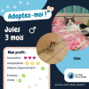 Jules est adoptable sous contrat associatif, et certificat d’engagement et de connaissance.