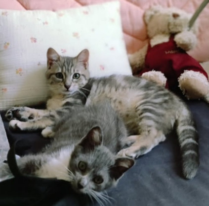 A adopter avec son frère Anis, Avril, né fin mai 2025, chaton tigré gris, gentil et joueur