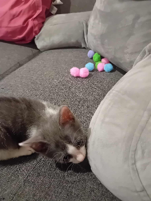 Trouvée cet été avec sa fratrie alors qu'ils n'avaient que quelques jours , ANDY est une petite minette élevée au biberon et donc très proche de l'humain, c'est la plus vive de la fratrie