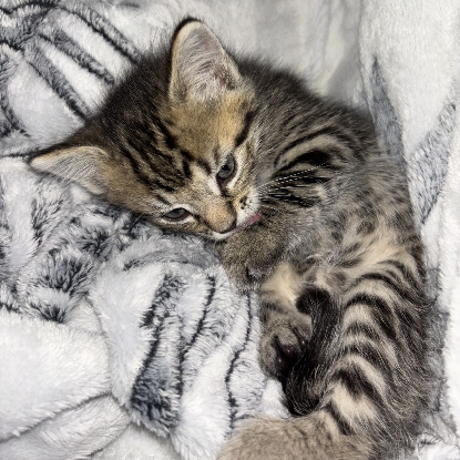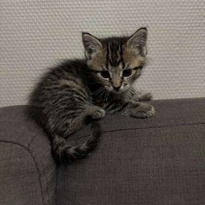 Voici Amy, une adorable chatonne pleine de douceur et de curiosité.