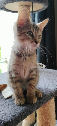 Adopter en Association c'est adopter responsable. Adopter en association c'est sauver deux animaux celui que vous adoptez et celui qui sera recueilli à sa place.Association felins vagabonds siret80302344900017) Ciboulette chatonne 2 mois identifiée par tatouage 308LOP de type européenne non lof.